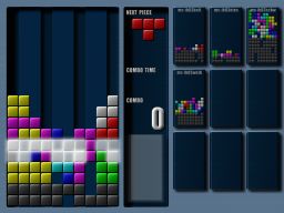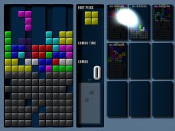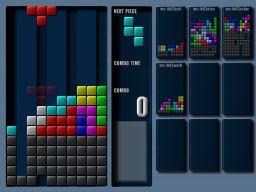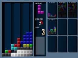 You probably noticed during a game or just by reading this manual that the amount of garbage you receive can be a lot more than just the 18 lines you have on your playfield. But that doesn't mean that you can't do anything against this. You are able to block incoming lines before they even enter your playfield. Below your Combo-Counter and your Combo-Timer is a small grey space. That's the garbage container. Garbage lines sent to you don't enter your field immediately but are sent into this container, every line is represented by a small grey block. The next time you drop a piece without deleting a line, all the garbage waiting in this container will be added to your playfield. But if you drop a piece and delete a line with it, you don't send lines to an opponent but you delete waiting garbage first, and then send the rest (if there is any) to your target.
