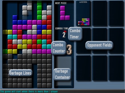 Playing Tetris alone can be fun, but Cultris was specially designed to be most entertaining when you play against others. The problem here won't be the speed of the pieces but the other players, because they will send you garbage-lines and you will send them. Garbage-lines are horizontal lines of grey blocks that are inserted from the bottom of your playfield, pushing all other blocks on your field upwards, and by that making it harder for you to survive or making it even impossible. Every garbage-line has one hole in it, so you are able to delete these lines as well.